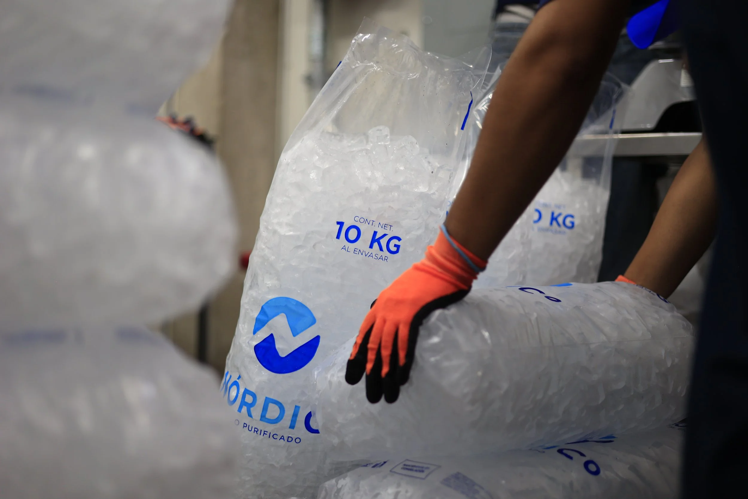 Embolsamos el hielo de manera automatizada y sin pasar por contacto humano para garantizar el más alto estandar de higiene.